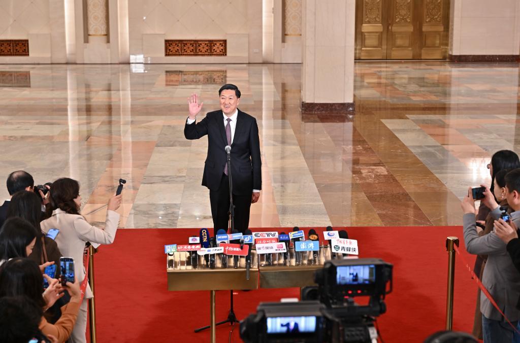 3月9日,十四届全国人大四次会议第二场“部长通道”在人民大会堂举行,交通运输部部长刘伟、农业农村部部长韩俊、体育总局局长高志丹接受了记者采访。